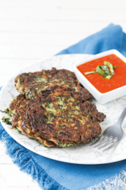 While I generally think of cheese pancakes being a sweet treat, I decided to turn them savory for a low-carb dinner. You can serve these as an appetizer for a dairy meal, on Chanukah as an alternative to potatoes, or simply for a dairy weeknight dinner when you don’t want to serve pasta.